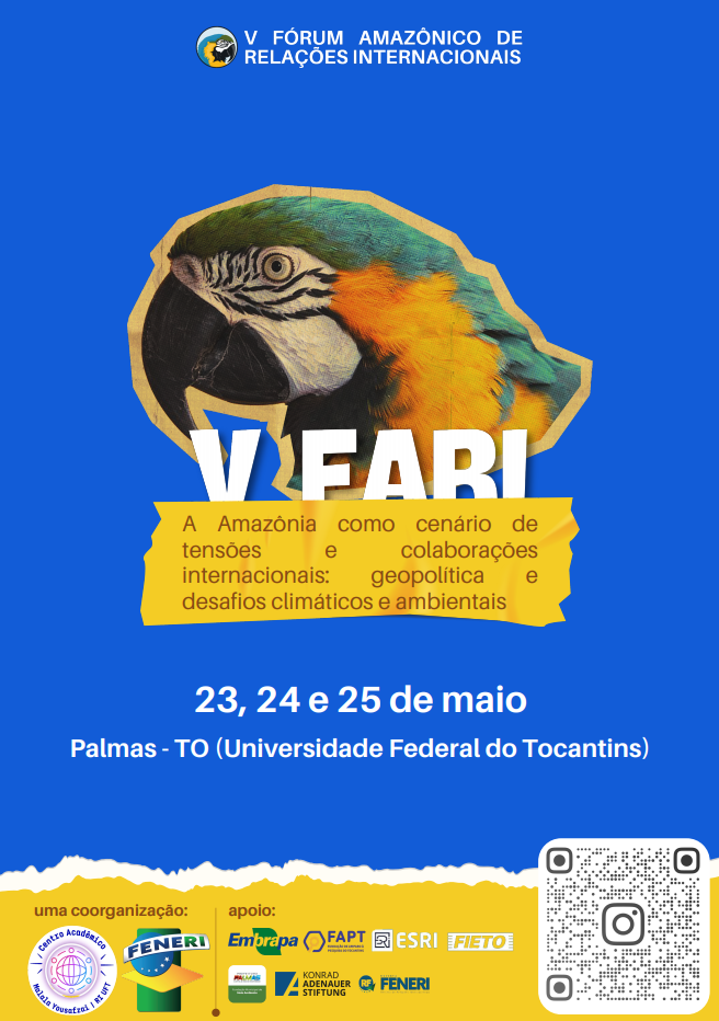 O Fórum Amazônico de Relações Internacionais (Fari) será realizado de 23 a 25 de maio no Câmpus de Palmas da Universidade Federal do Tocantins (UFT). A venda de ingressos está disponível aqui.