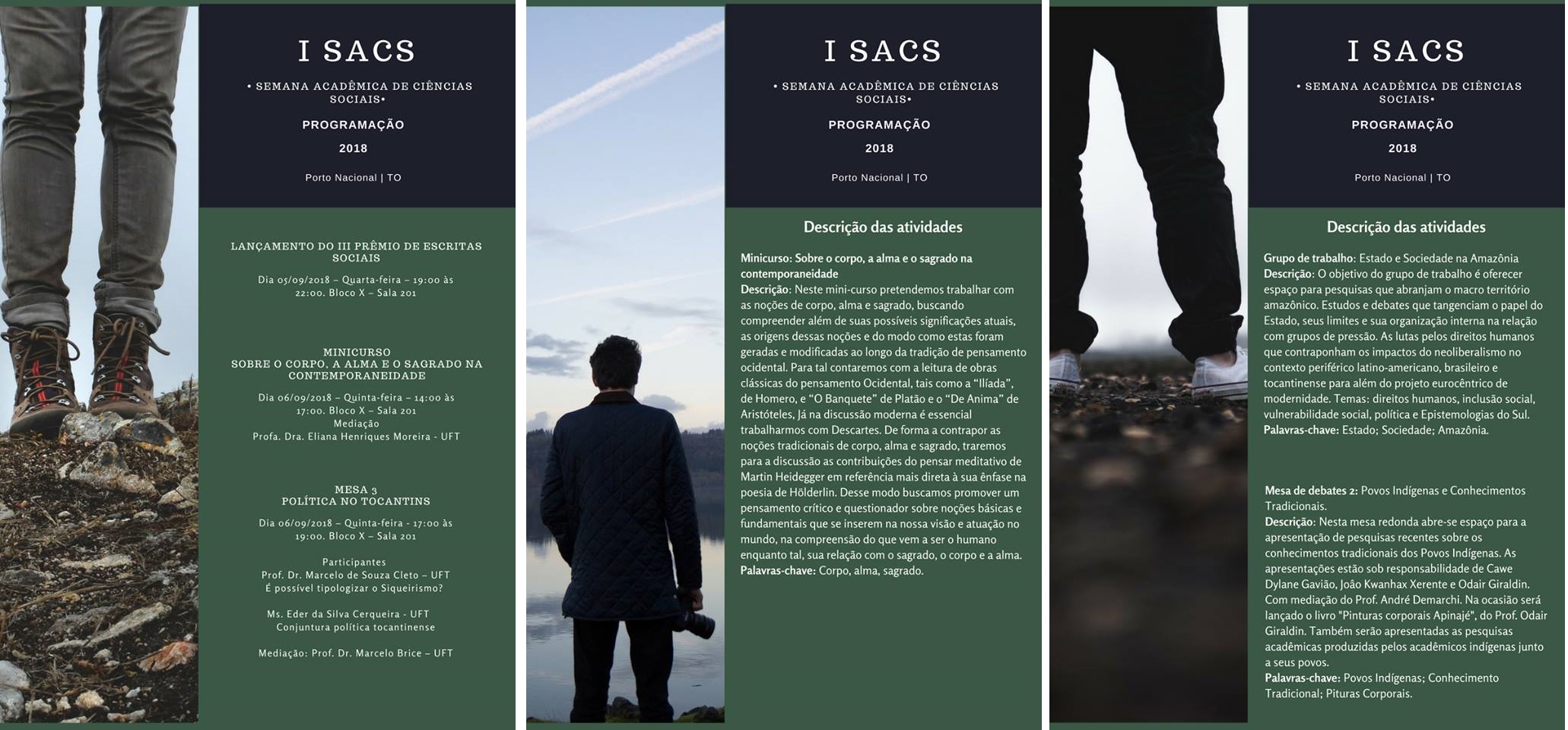Ocorrerá nesta quarta e quinta-feiras (05 e 06) a I Semana Acadêmica de Ciências Sociais (Sacs) no Câmpus de Porto Nacional.