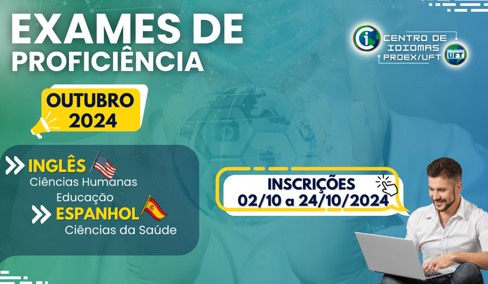 O Centro de Idiomas da Universidade Federal do Tocantins (UFT) informa que estão abertas as inscrições para os Exames de Proficiência em Leitura de Línguas Estrangeiras, exigidos para ingresso em Programas de Pós-graduação Stricto Sensu (Mestrado e Doutorado).