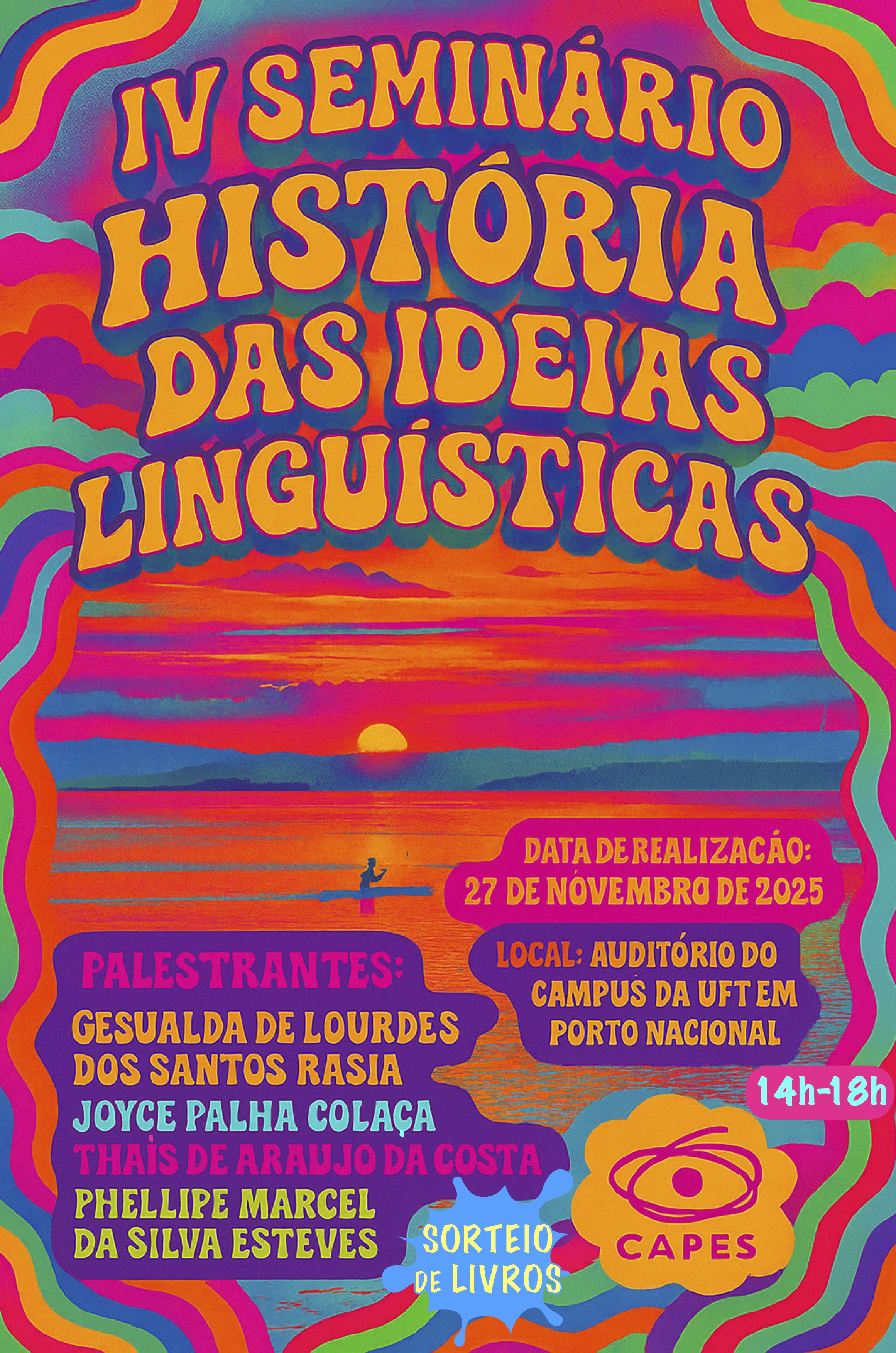 Ocorrerá no dia 27 de novembro, das 14h às 18h, no Câmpus de Porto Nacional, o IV Seminário de História das Ideias Linguísticas (HIL). O evento é promovido pelo Núcleo de Estudos da Linguagem (NEL) e pelo Programa de Pós-Graduação em Letras (PPGL), com apoio do Programa de Apoio a Eventos no País da Coordenação de Aperfeiçoamento de Pessoal de Nível Superior (Paep-Capes). As inscrições serão feitas no local. Todos os participantes receberão certificado de presença. Haverá ainda sorteio de livros durante a programação.
