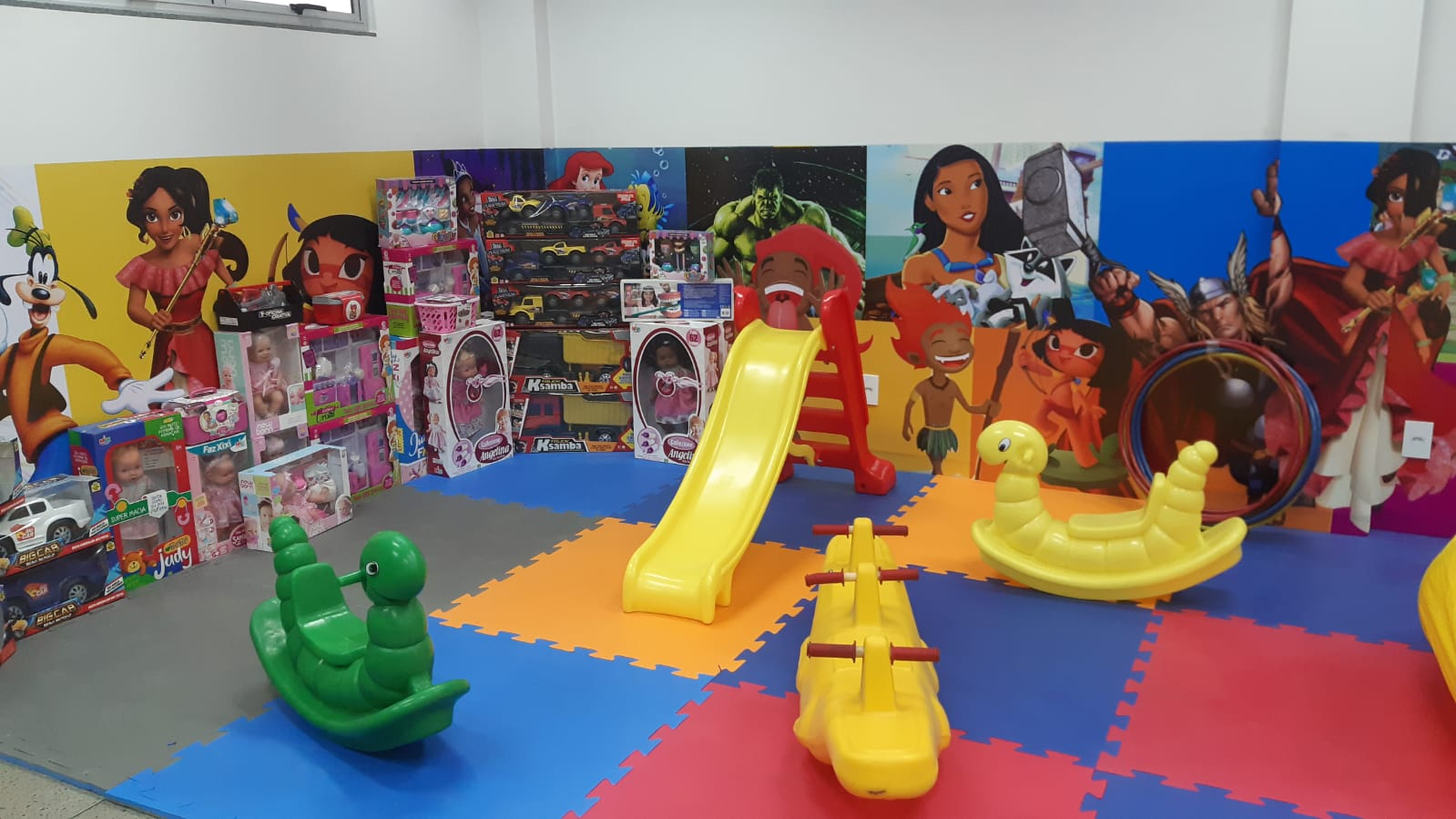 O espaço lúdico pedagógico está sendo organizado a partir de cantinhos, sendo eles:
