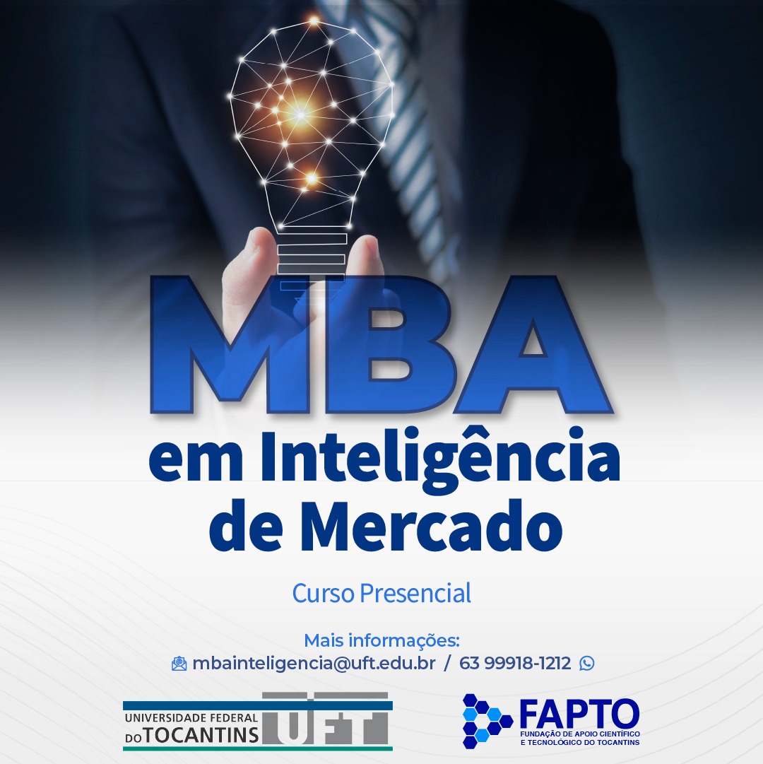 Foram prorrogadas, até o dia 31 de julho de 2022, as inscrições para o curso de especialização MBA Executivo em Inteligência de Mercado. O edital oferta 55 vagas, sendo 05 (cinco) delas reservadas à candidatos servidores técnicos da UFT. A oportunidade é aberta a profissionais graduados em qualquer área.