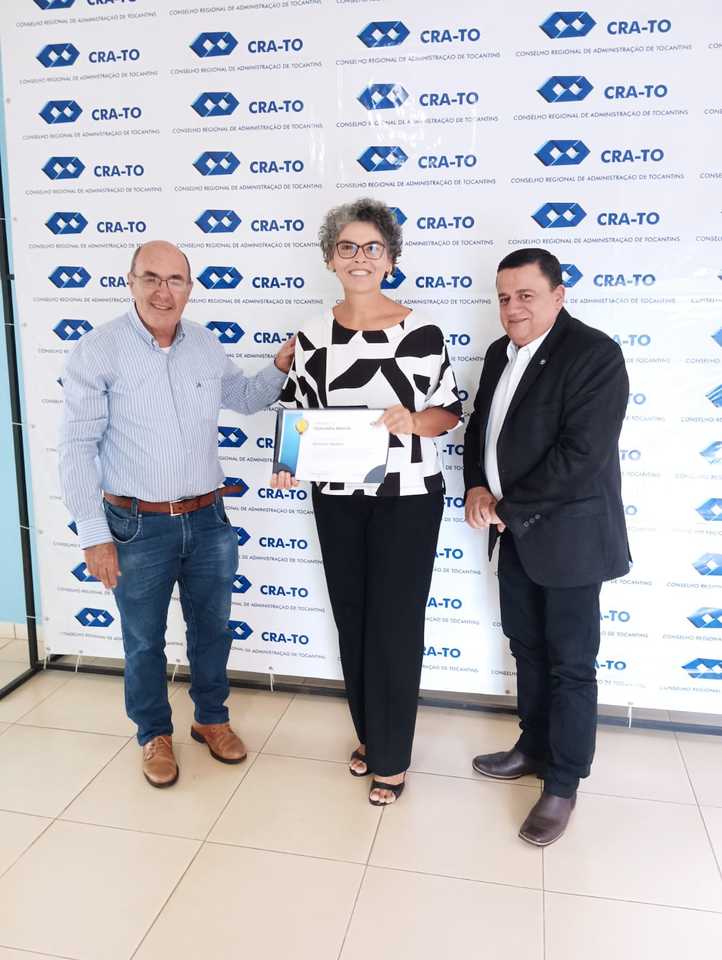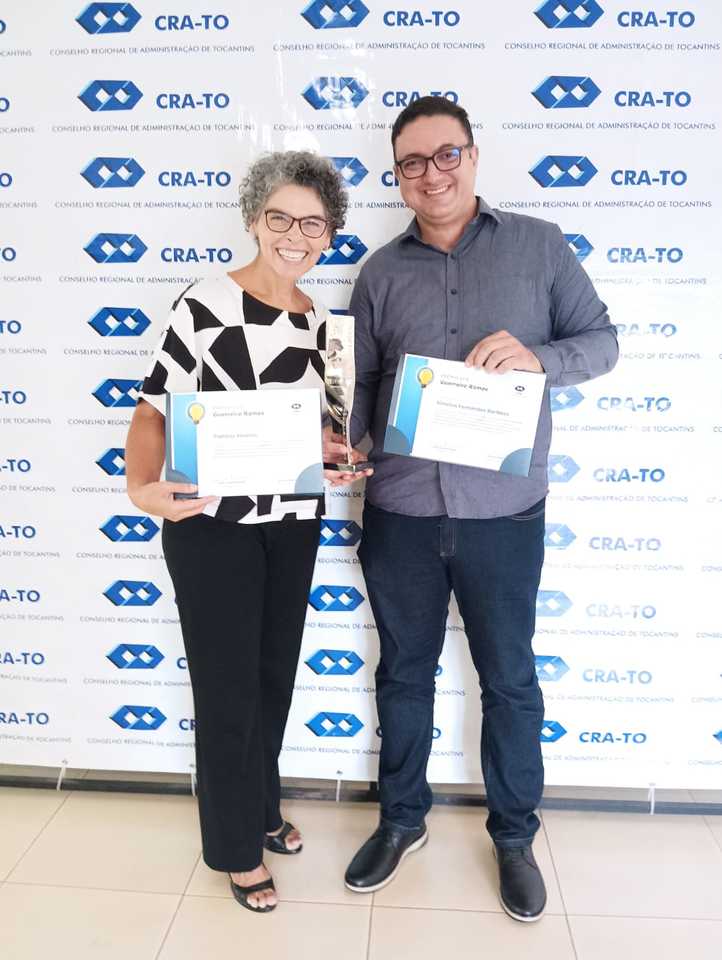 O Conselho Regional de Administração do Tocantins (CRA-TO), em plenária com seus conselheiros na tarde desta quarta-feira (17), entregou o certificado e troféu da premiação à Vinicius e Patricia. O presidente do CRA-TO, Anderson Luiz Justino, destacou a importância desse prêmio em aproximar o conselho da universidade e dos profissionais de administração. “Esse prêmio mostra a força do administrador, o quanto Vinicius teve a expertise de construir esse projeto junto com a professora Patrícia, que foi muito importante essa união deles, fortalecendo mais ainda a classe. Por isso a gente faz questão de trazer para a nossa plenária o prêmio, para mostrar o profissional administrador e sua importância para a sociedade”, ressalta Justino.