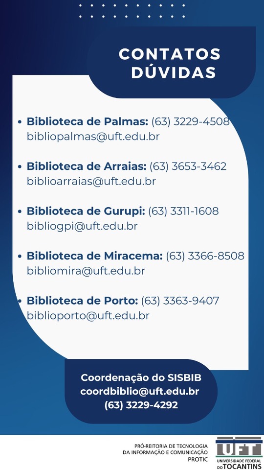 Para além da pesquisa integrada, os usuários das bibliotecas da UFT também poderão: