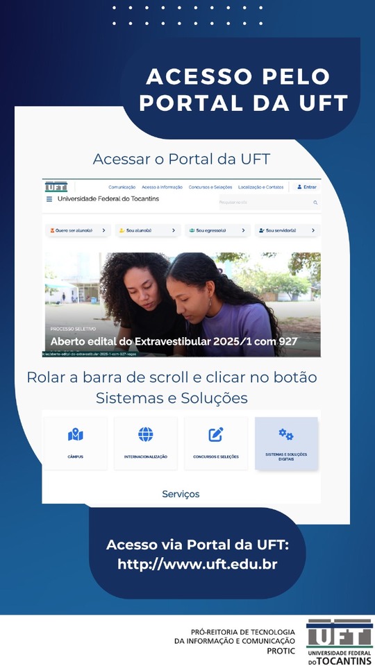 O novo Sistema entra em operação no mês de agosto de 2024 em substituição ao antigo Portal da Biblioteca SIE/UFT.