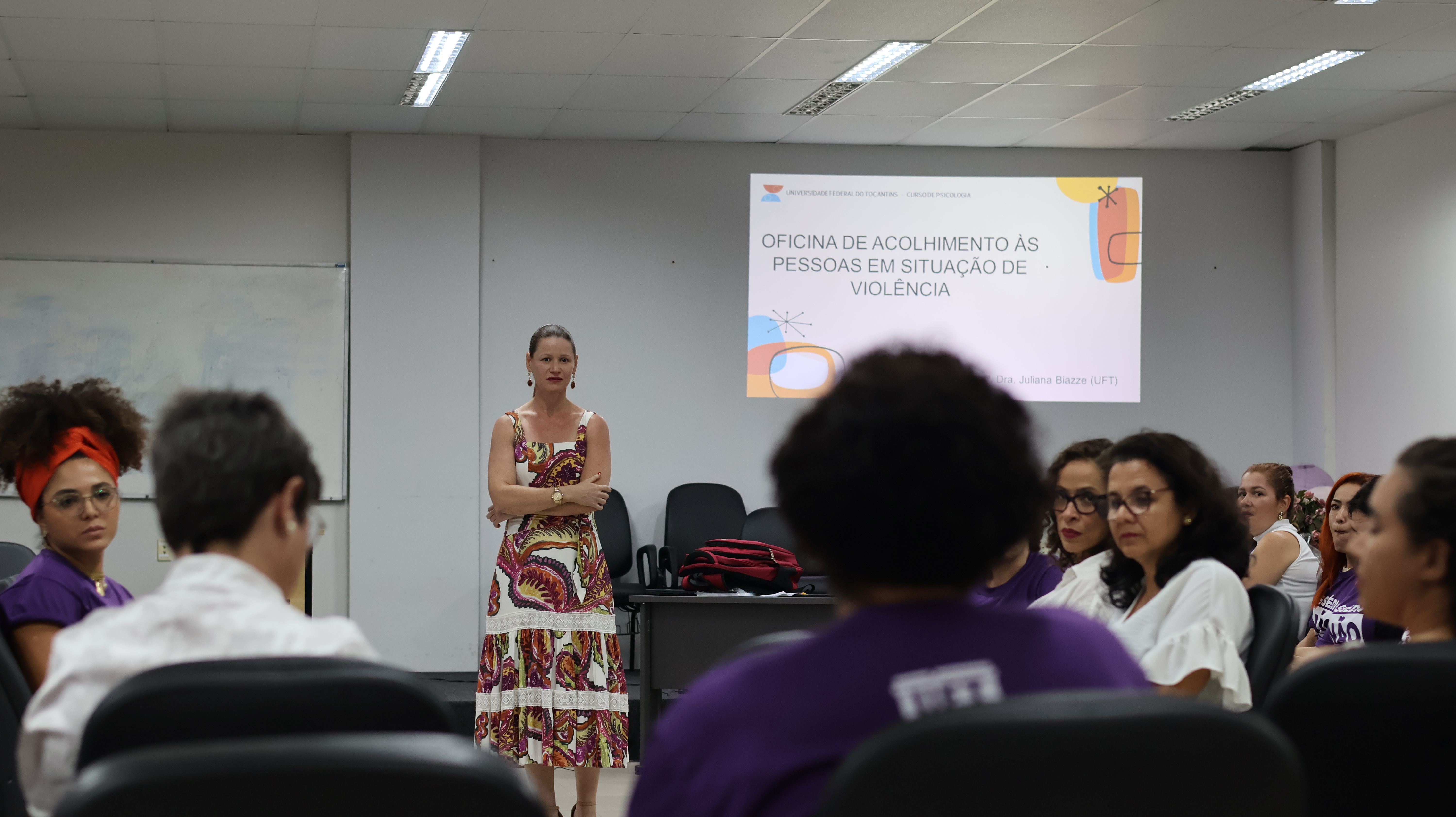 Após dois dias de evento, a campanha “Assédio não passa” encerrou a parte de capacitação dos servidores com a oficina de acolhimento às pessoas em situação de violência, ministrada pela psicóloga e professora Dr.ª Juliana Biazze, na tarde da última quinta-feira (7), no Auditório da Reitoria, em Palmas. A oficina foi uma continuação das palestras anteriores, aplicando os ensinamentos das procuradoras federais Daniela Carvalho e Carliane Carvalho no processo de lidar com uma vítima de assédio e/ou discriminação dentro do ambiente universitário.