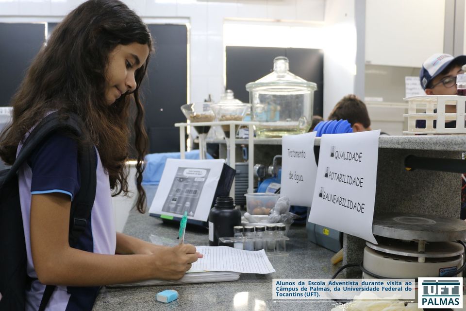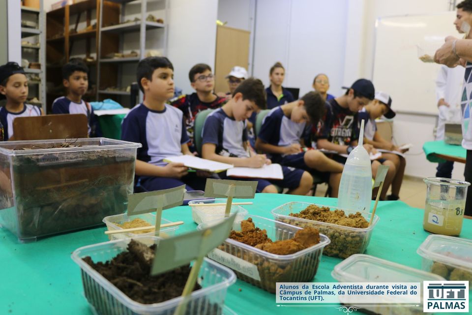 No último dia 14 de novembro, alunos da Escola Adventista de Palmas visitaram laboratórios dos Câmpus de Palmas, da Universidade Federal do Tocantins (UFT). Os pequenos cientistas conheceram o Laboratório de Pesquisa em Química Ambiental e de Biocombustíveis (Lapeq); o Laboratório de Geologia e Geomorfologia (Labgeo); e a Sala de Apoio ao Museu de Morfologia.
