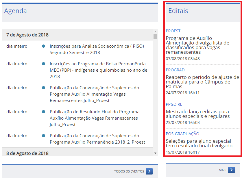 Para facilitar o acesso dos alunos, docentes, técnicos-administrativos e público externo à Universidade Federal do Tocantins (UFT), além de viabilizar uma melhor divulgação dos processos de seleção e programas ofertados pela instituição, o Portal da UFT oferece uma nova seção destinada à publicação de matérias específicas dos editais divulgados em todos os âmbitos da universidade.