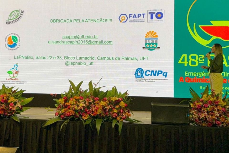 A Universidade Federal do Tocantins (UFT) marcou presença de forma inédita na 48ª Reunião Anual da Sociedade Brasileira de Química (RASBQ), em Campinas (SP). A professora Elisandra Scapin, que integra o colegiado de Engenharia Ambiental e os Programas de Pós-Graduação em Ciências do Ambiente (PPG-Ciamb) e Rede Bionorte, foi a primeira docente da UFT a ministrar uma palestra no evento, considerado o maior da área de Química na América Latina e um dos mais relevantes do Brasil.