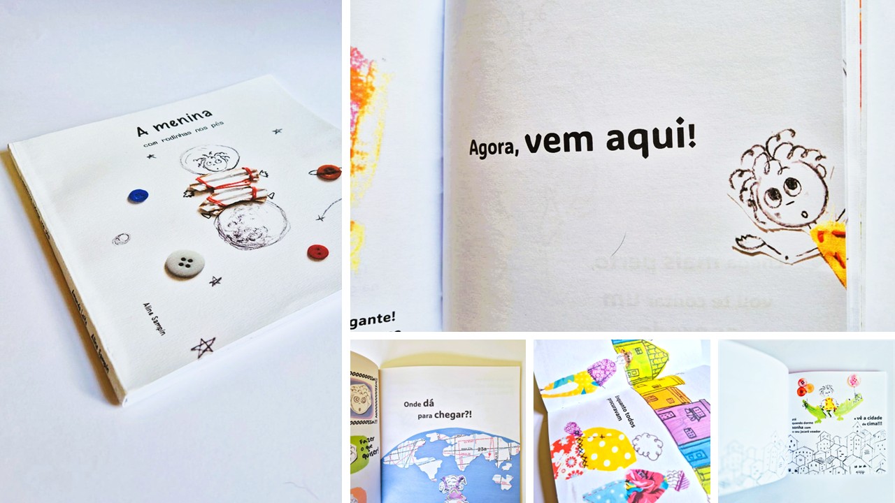 O desenvolvimento da obra contou com a participação de Aline Sampin, formada em Artes Cênicas pela Universidade Federal do Estado do Rio de Janeiro (Unirio), responsável pelas ilustrações. A autora explica: “O livro é um desdobramento de memórias afetivas. É um convite ao leitor para soltar a imaginação e viver grandes aventuras no quintal, na intimidade da casa. Trabalhei junto com a artista visual Aline Sampin (RJ), referências de cor, textura e sensações, misturando técnicas como a costura e a colagem, criando cenas ilustradas cheias de detalhes. O leitor fica com vontade de passar a mão nos detalhes e viajar por todos os cantos com a menina com rodinhas nos pés”.