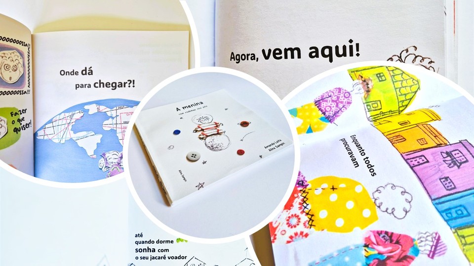 A pergunta “onde será que dá para chegar?” guia a história e também a pesquisa visual do livro. As ilustrações, criadas por lembranças de ateliês de costura da infância, usam colagens e técnicas mistas, com uma experiência sensorial envolvente.