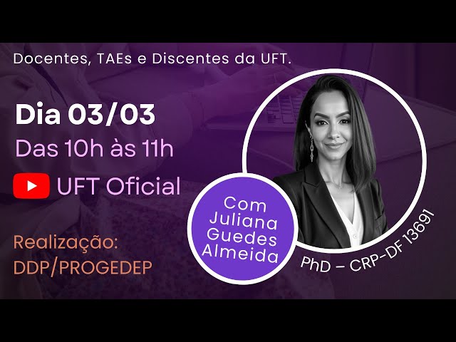 A abertura ocorre no dia 3 de março, das 10h às 11h, com a live “Liderança, Saúde Mental e NR 1”, transmitida pelo canal oficial da UFT no YouTube. A atividade é voltada a docentes, técnicos-administrativos e estudantes.