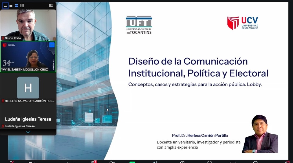 A programação contou com a palestra “Design de Comunicação Institucional, Política e Eleitoral”, conduzida pelo professor Herless Carrión, da instituição peruana. A atividade reuniu estudantes do curso de Comunicação Social da Universidad César Vallejo e pesquisadores de mestrado, doutorado e pós-doutorado vinculados ao Opaje-UFT.