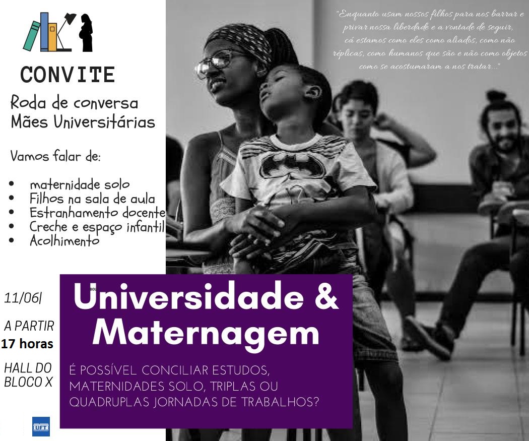 Com o objetivo de discutir sobre conciliação de estudos com maternidade e, às vezes, jornada de trabalho, ocorre, nesta terça-feira (11), a Roda de Conversa Mães Universitárias, no hall do bloco X, às 17h, no Câmpus de Porto Nacional da Universidade Federal do Tocantins (UFT). O evento é direcionado a mães do câmpus: docentes, discentes, técnicas-administrativas e terceirizadas, e tem como objetivo levantar demandas para a construção de uma rede de apoio.