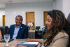 Outro momento da agenda foi a conversa com estudantes que participam do programa Afirma SUS, iniciativa voltada à formação de estudantes comprometidos com a defesa e o fortalecimento do sistema público de saúde.