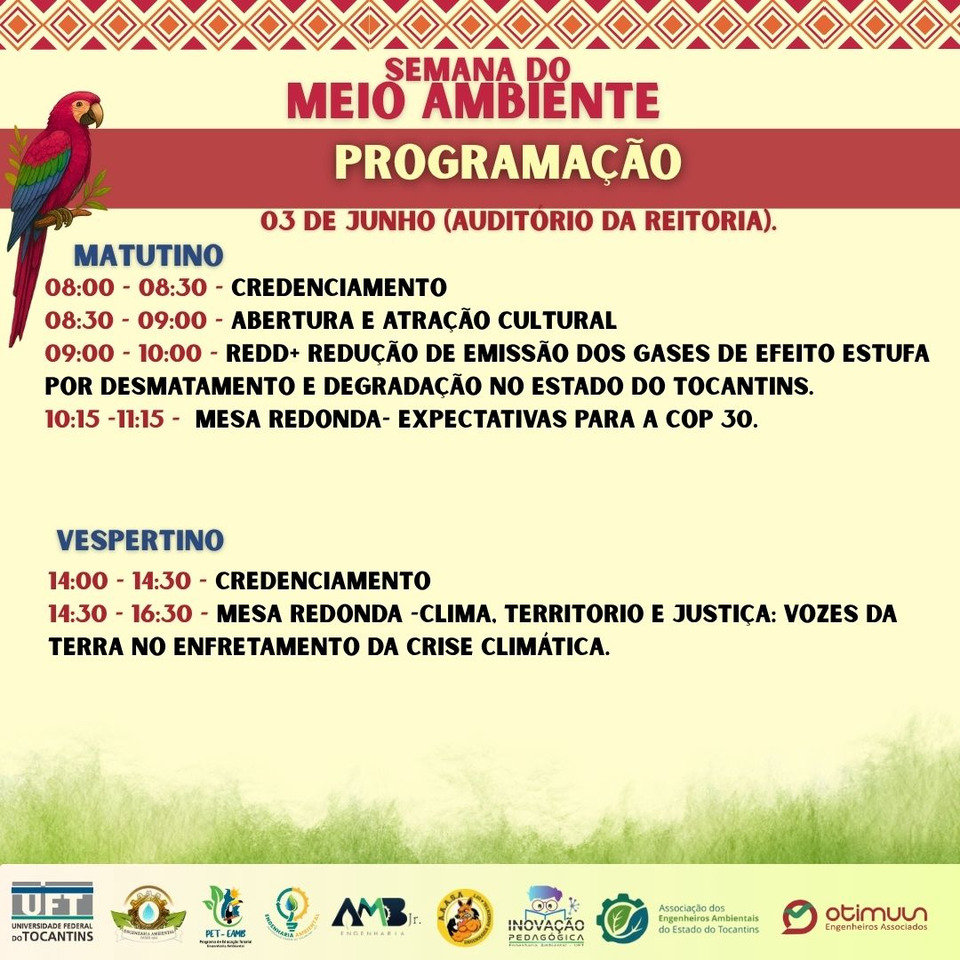 Para o professor Thiago Bandeira, do curso de Engenharia Ambiental, o evento é uma demonstração importante de liderança estudantil. “A iniciativa é ótima. A liderança por parte das entidades e, acima de tudo, a organização de um evento na Semana Nacional do Meio Ambiente é super válida. Foi proposta toda uma programação com palestras e rodas de conversa sobre a temática escolhida por eles — a mudança climática e os rumos do Tocantins na COP30. Eles estão de parabéns”, destacou.