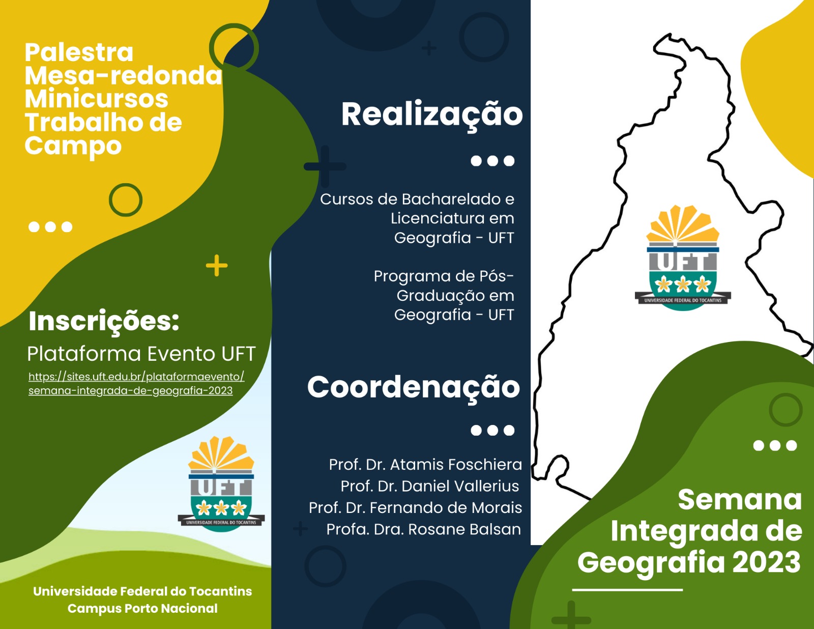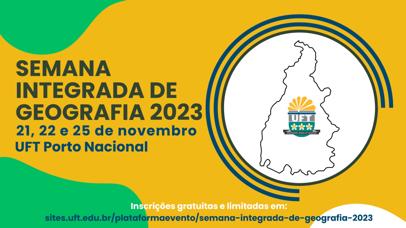 A Semana Integrada de Geografia 2023 será realizada nos dias 21, 22 e 25 de novembro, no Câmpus de Porto Nacional. Este evento é promovido pelos cursos de bacharelado e licenciatura em Geografia e pelo Programa de Pós-Graduação em Geografia (PPG/UFT). A programação é totalmente presencial e gratuita.