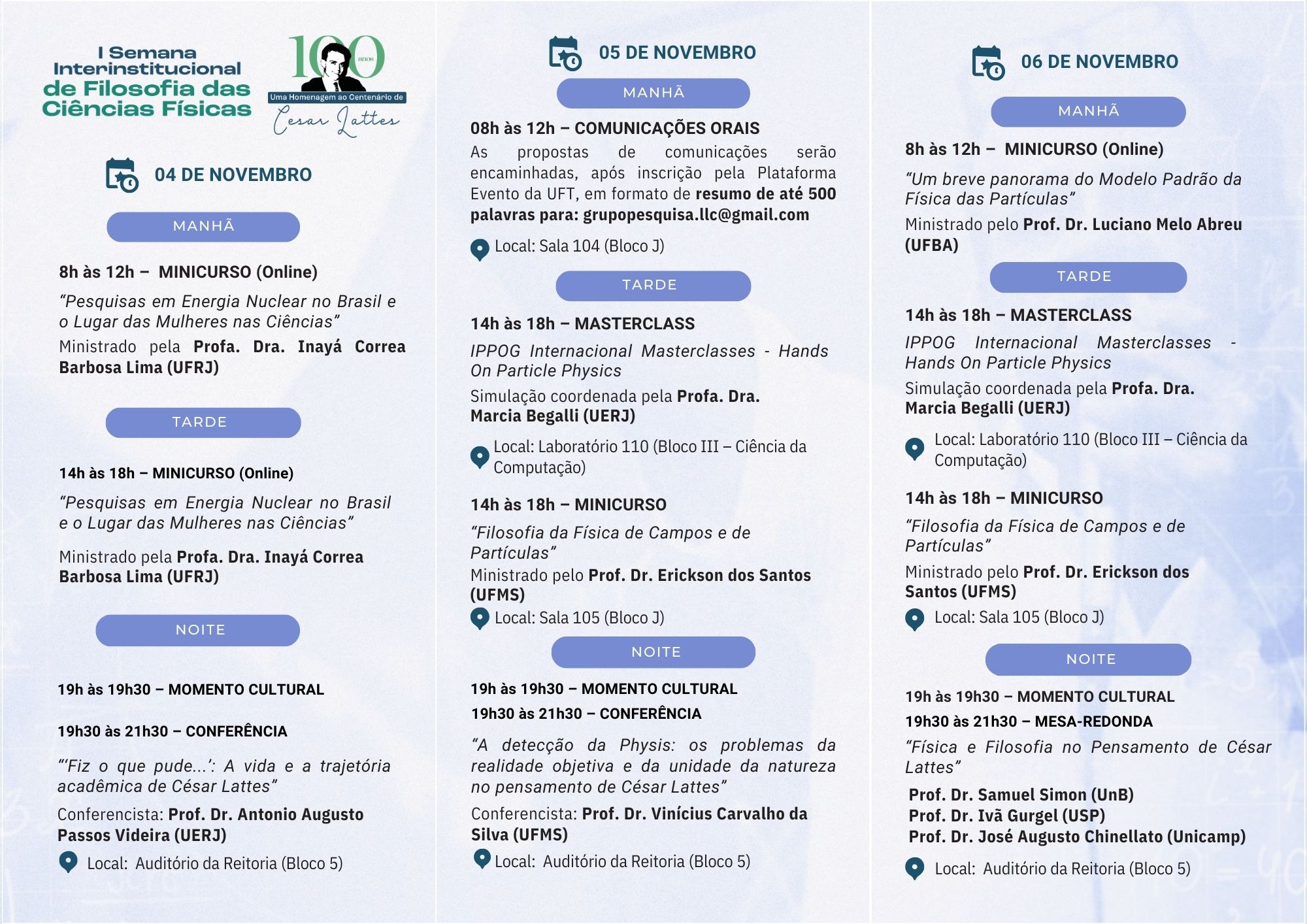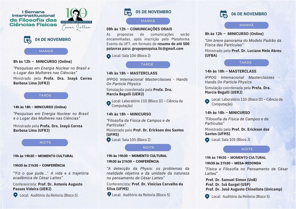 A finalidade é congregar professores e estudantes de Filosofia, Física, Química e áreas afins em torno da temática que homenageia o cientista César Lattes, o mais importante físico brasileiro; o evento também celebra o centenário do cientista, indicado sete vezes para o Prêmio Nobel.