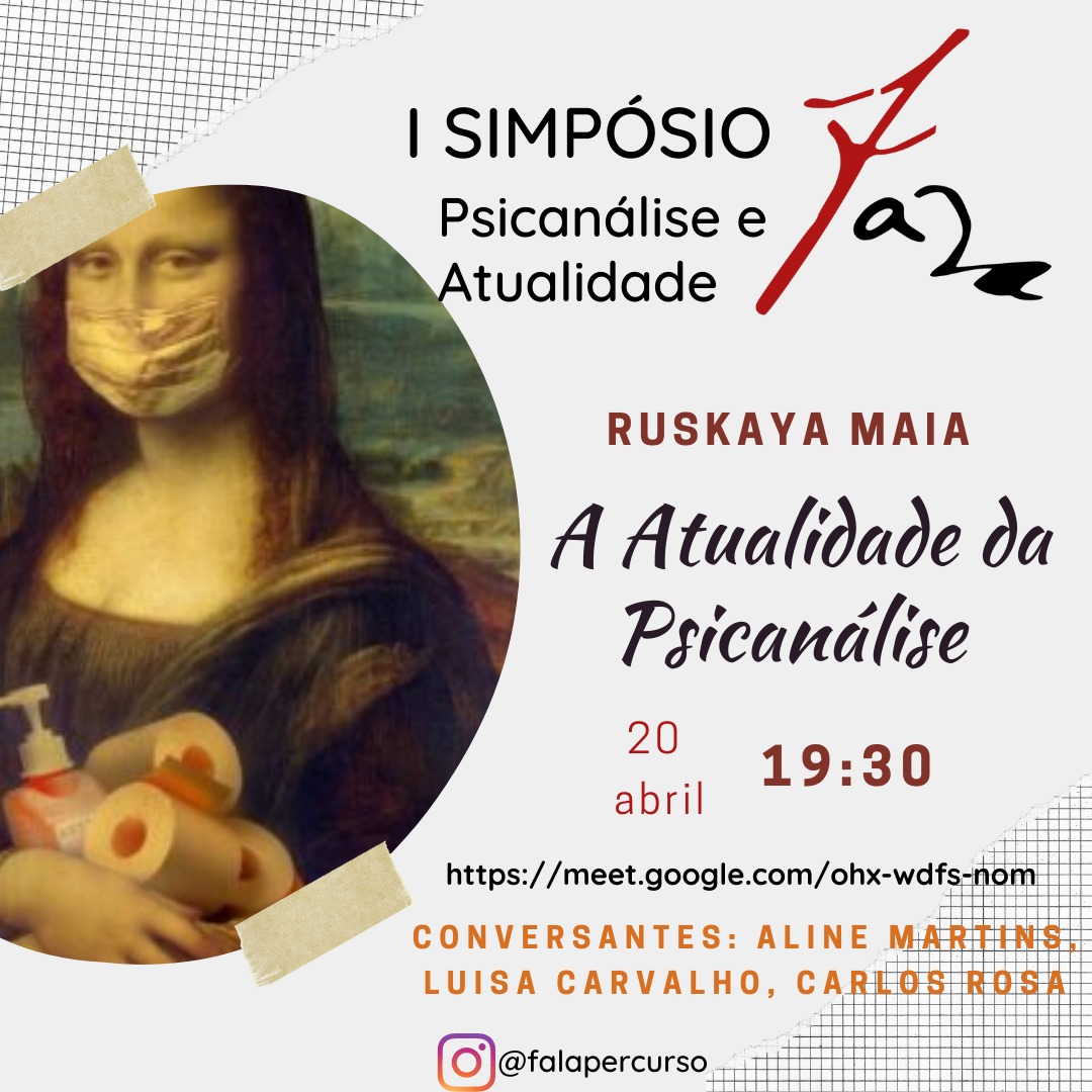 Para participar da palestra de hoje, não é necessário realizar inscrição, basta acessar o link da sala do Google Meet (https://meet.google.com/ohx-wdfs-nom) e aproveitar a abertura do I Simpósio Psicanálise e Atualidade.