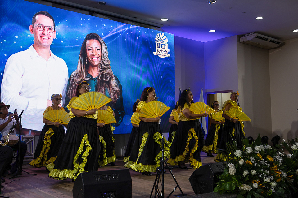 A Universidade Federal do Tocantins (UFT) celebrou, na noite desta quarta-feira (13/11), no auditório do Centro Integrado de Ciência, Cultura e Arte (Cuica), no Câmpus de Palmas, a solenidade de posse da nova gestão (período de 2025 a 2029). Na cerimônia, que marcou o início do novo ciclo administrativo, assumiram oficialmente os cargos a reitora Maria Santana e o vice-reitor Marcelo Leineker. O evento contou com a presença de autoridades estaduais e federais, representantes de instituições públicas e da sociedade civil, além de representantes e membros da comunidade acadêmica.