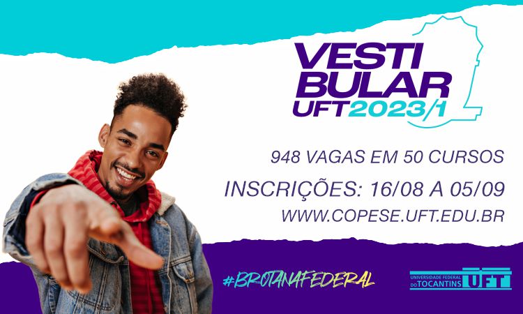 Com oferta de 948 vagas distribuídas entre 50 cursos de graduação, a Universidade Federal do Tocantins lançou, nesta segunda-feira, 1º de agosto, o Edital nº 55/2022 referente ao Concurso Seletivo Vestibular 2023/1. O período para inscrições vai das 9h do dia 16 de agosto até às 17h de 05 de setembro de 2022. O processo de inscrição no Vestibular é feito somente via internet, na página da Coordenação de Processos Seletivos (Copese - www.copese.uft.edu.br) e a taxa de inscrição é de R$ 140,00.