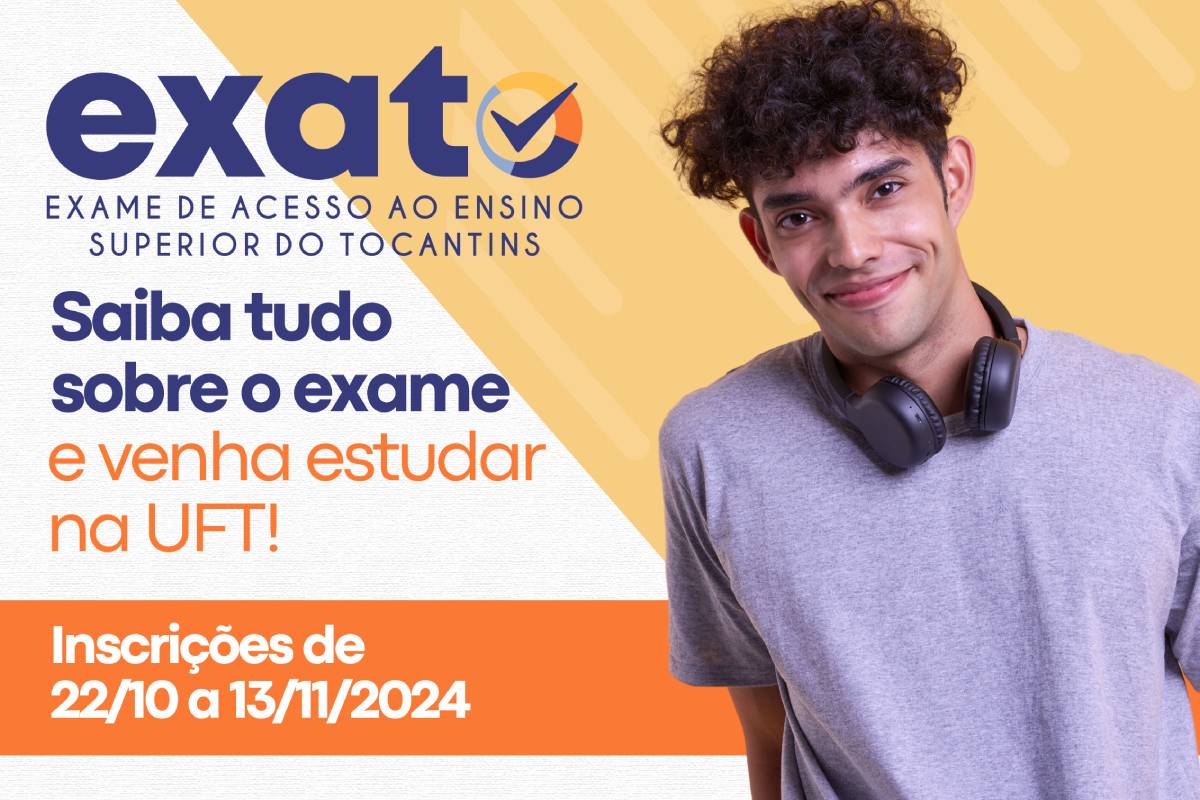 Foi publicado nesta quarta-feira, dia 9 de outubro, o edital da primeira edição do Exato - o Exame de Acesso ao Ensino Superior do Tocantins. O Exato será realizado pela Universidade Federal do Tocantins (UFT), pela primeira vez nesse ano de 2024, para ingresso nos cursos de graduação da instituição a partir de 2025. As inscrições serão realizadas de 22 de outubro a 13 de novembro. Já o pedido de isenção da taxa de inscrição acontece antes, nos dias 14 e 15 de outubro. As provas serão aplicadas no dia 15 de dezembro nos municípios de Palmas, Arraias, Gurupi, Miracema e Porto Nacional.