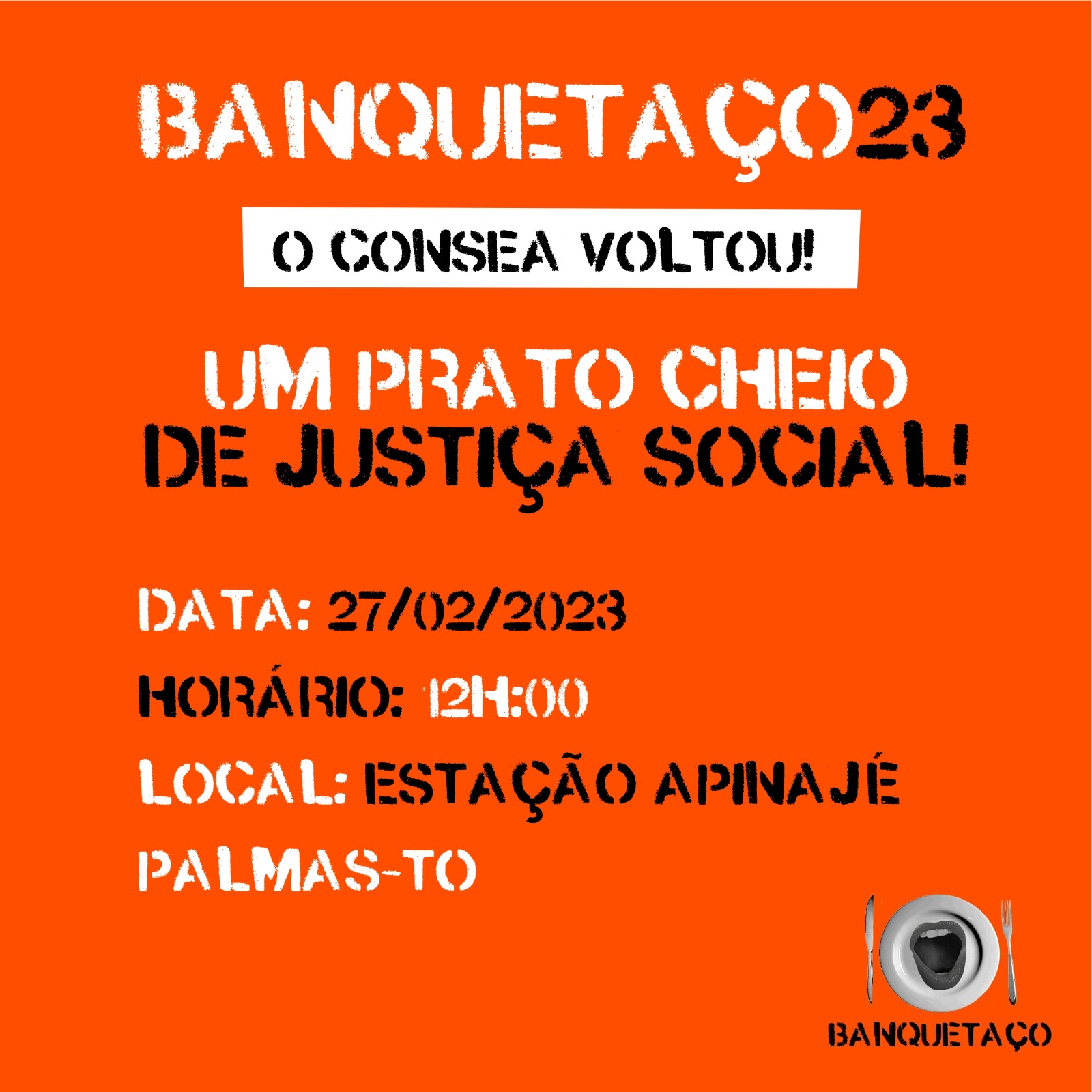 A UFT está participando da organização do Banquetaço 2023 no Tocantins. O evento, que será realizado nesta segunda- feira, 27 de fevereiro, às 12:00h, em 19 estados e 40 cidades, entre elas Palmas, traz como tema “O CONSEA VOLTOU! Um prato cheio de justiça social”. O objetivo é celebrar a volta do Conselho Nacional de Segurança Alimentar e Nutricional (Consea), que havia deixado de fazer parte da estrutura ministerial do governo anterior. No Tocantins, o evento está sendo conduzido pelo Conselho Estadual de Segurança Alimentar e Nutricional (Consea-TO) e faz parte de uma mobilização nacional desenvolvida pelo coletivo Banquetaço, que consiste na realização de um banquete público e distribuição de alimentos para visibilizar a questão da fome e insegurança alimentar no Brasil.