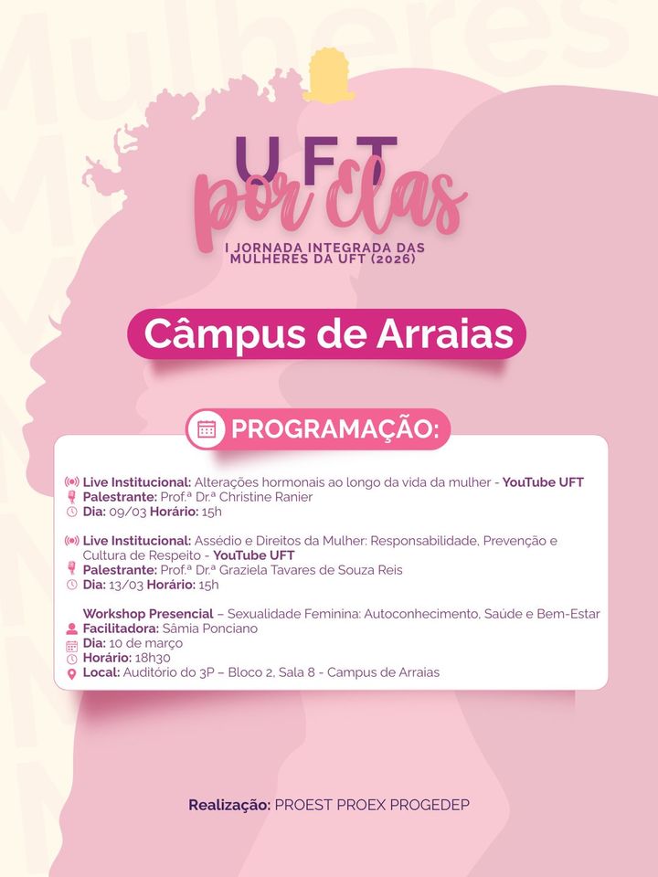 Na UFT, a I Jornada Integrada das Mulheres busca ampliar esse debate e fortalecer ações que promovam acolhimento, informação e protagonismo feminino no âmbito acadêmico e na sociedade.