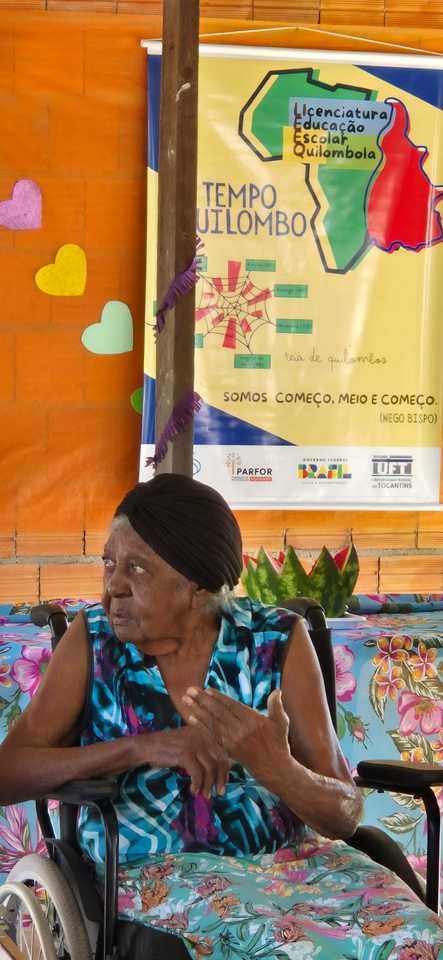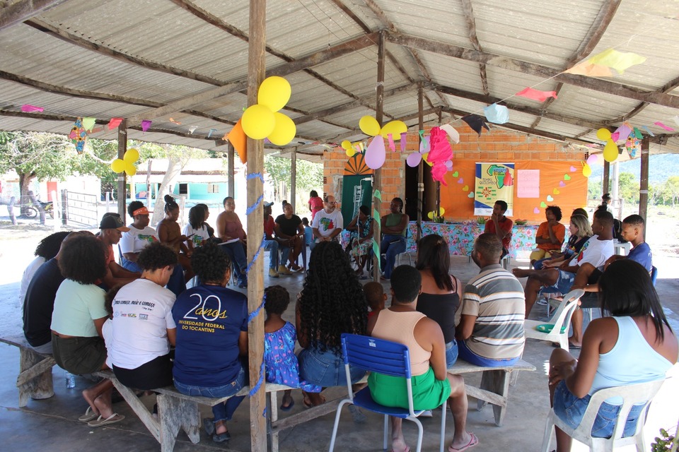 Nos dias 28 e 29 de junho, o território Kalunga, na comunidade Riachão, em Monte Alegre de Goiás, sediou atividade pedagógica e cultural promovida pelo curso de Licenciatura em Educação Escolar Quilombola, da Universidade Federal do Tocantins (UFT). A Culminância do Tempo Quilombo, primeira edição do semestre de 2025, foi uma ação fundamental para a formação docente voltada à realidade quilombola. O evento teve como destaque a presença da formadora quilombola Doutora Honoris Causa Procópia dos Santos Rosa, que ministrou uma aula. Procópia é doutora pela Universidade Estadual de Goiás (UEG), uma das maiores lideranças de seu povo, com projeção internacional, e uma das principais vozes do povo Kalunga.