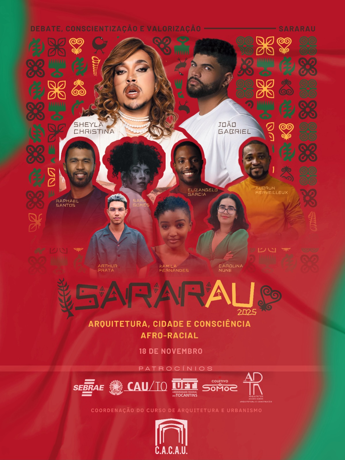 A Coordenação do curso de Arquitetura e Urbanismo da Universidade Federal do Tocantins (UFT), em parceria com o Centro Acadêmico de Arquitetura e Urbanismo (Cacau), promove no dia 18 de novembro o Sararau – Arquitetura, Cidade e Consciência Afro-Racial. O evento de extensão busca refletir sobre as influências afro-raciais na arquitetura e no urbanismo do Brasil.