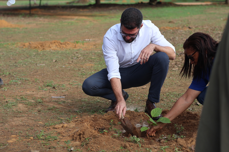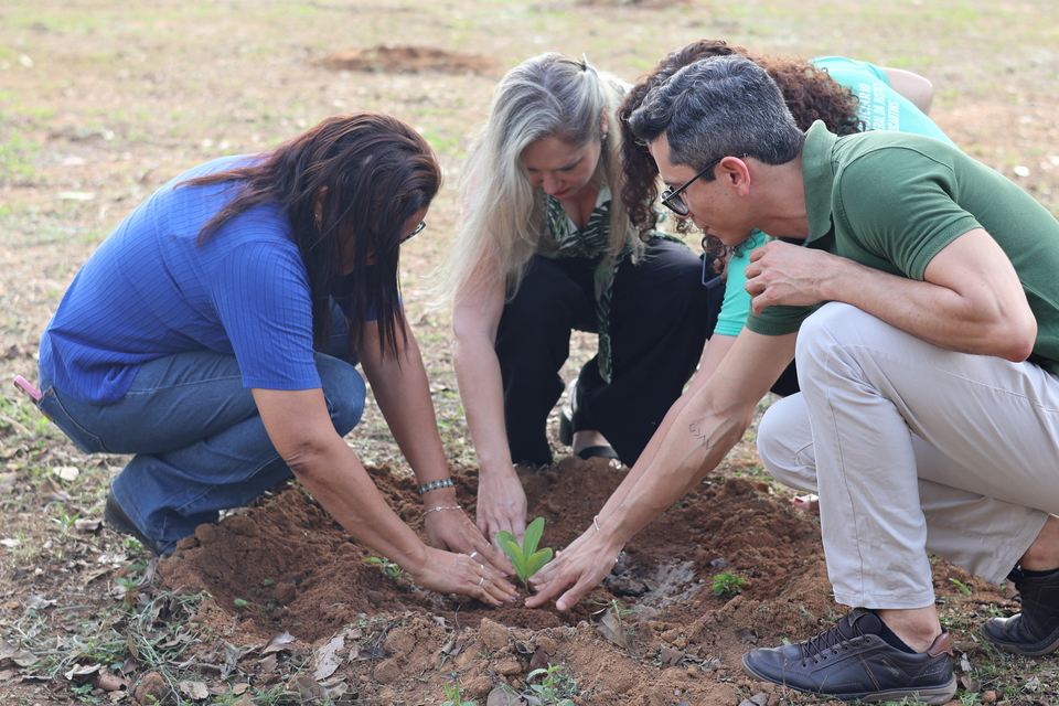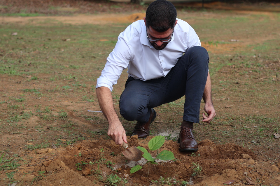 Leineker acrescentou que a fixação de mudas busca reduzir a pegada de carbono e compensar as emissões da Universidade e de seus parceiros.