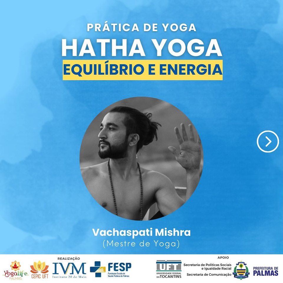 As atividades com o Dr. Radheshyam Mishra e com o mestre Vachaspati Mishra iniciarão em Palmas, dia 23 de março (sábado), das 17 às 20h, no Parque Municipal da Pessoa Idosa (301 Sul). A palestra “Yoga e Saúde Mental: A cessação das flutuações da mente”, com Dr. Radheshyam Mishra, no dia 26 de março, às 17h, no auditório da Reitoria da UFT. Os eventos têm certificação pela UFT, a inscrição é gratuita e pode ser feita na Plataforma Evento da UFT.